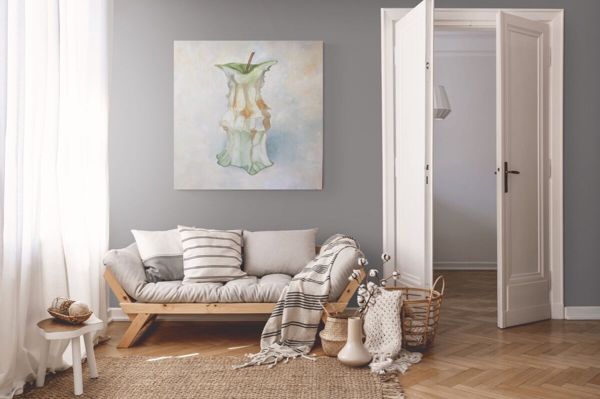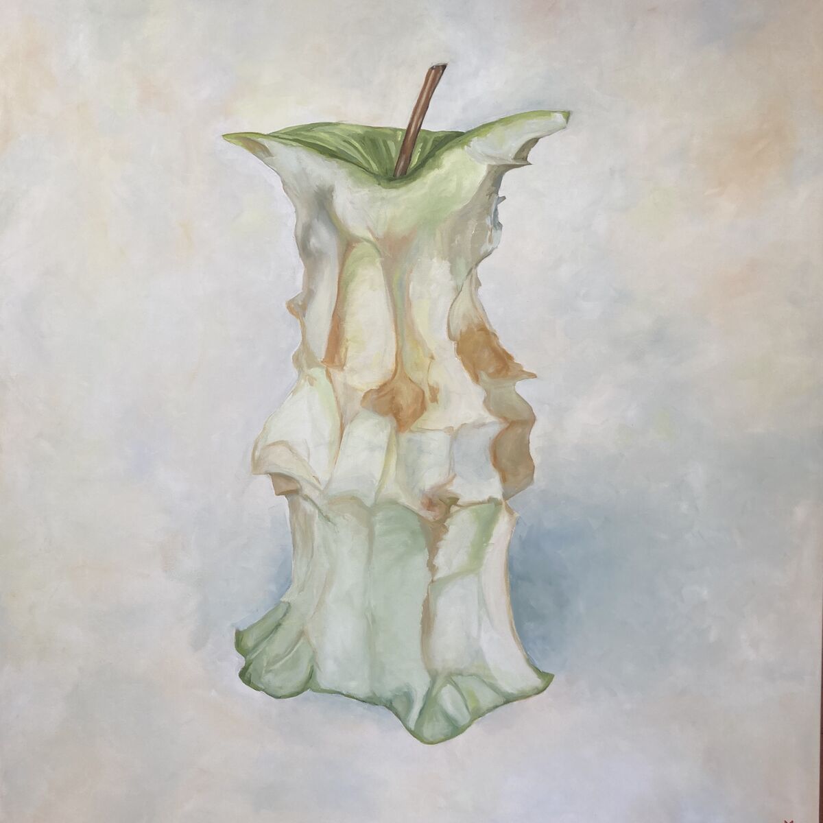 One of the definitions of a core in the Oxford dictionary is “the part of something that is central to the existence or character.” So, after eating a crisp Granny Smith apple you reach the core, the centre to its existence. The bit we discard and think nothing of. This has made me reflect on our own core, our centre and reason to be, and how important it is to stop and take note of our actions and see beyond our first impressions of others, because “At the Core” we find our real character. This is a large piece. It would sit well on a feature wall.