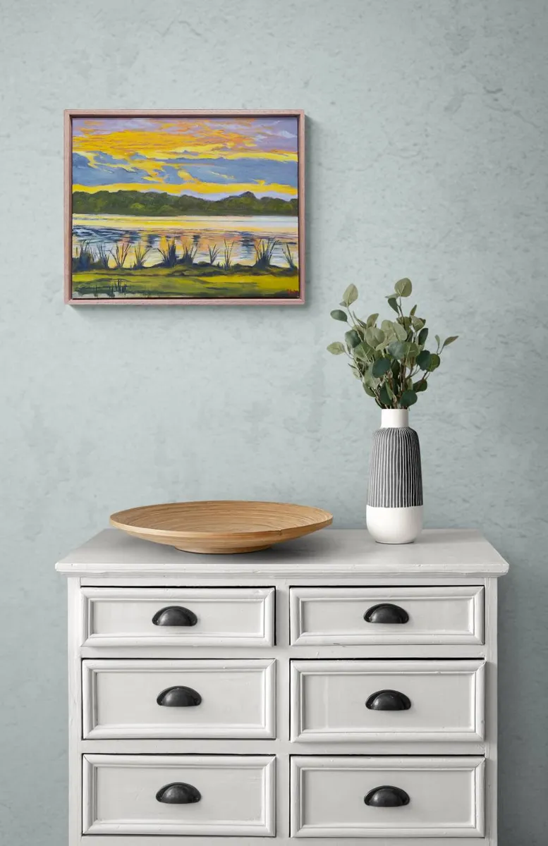 I think the title of this painting says it all. The end of the day and the sky putting on a majestic display. A time for peace and reflection.