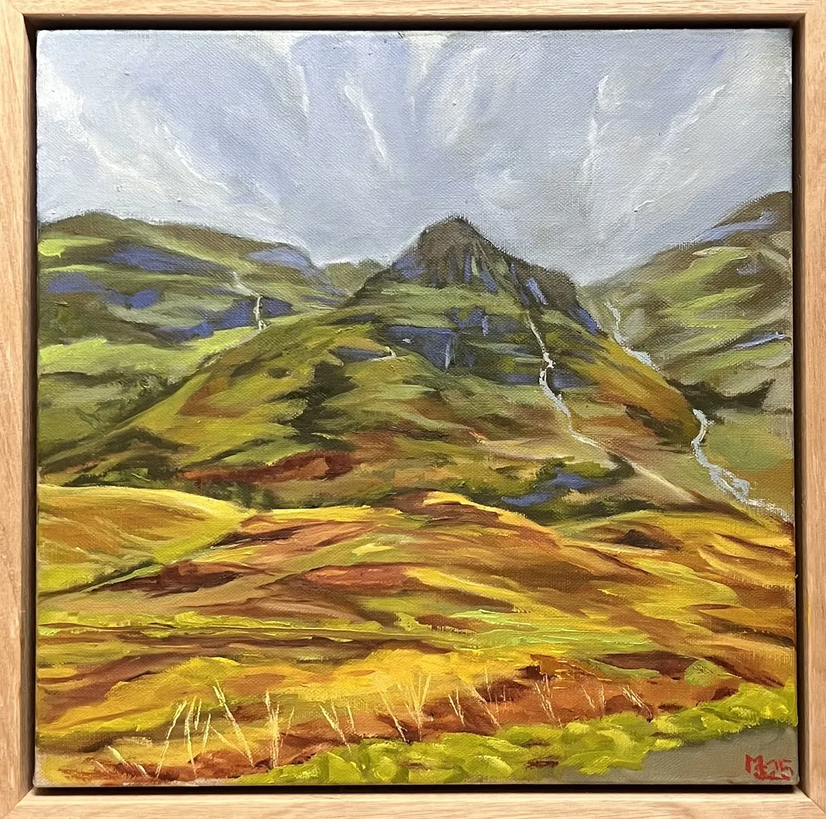 Not until you drive through the Highlands in Scotland do you realise how majestic they are. Incredible peaks just jut out, seeming to reach the sky. In Autumn they are covered in dying bracken that gives the peaks a rusty colour, and little rivulets flow down the rocky surfaces. It’s very quiet there. A beautiful place.