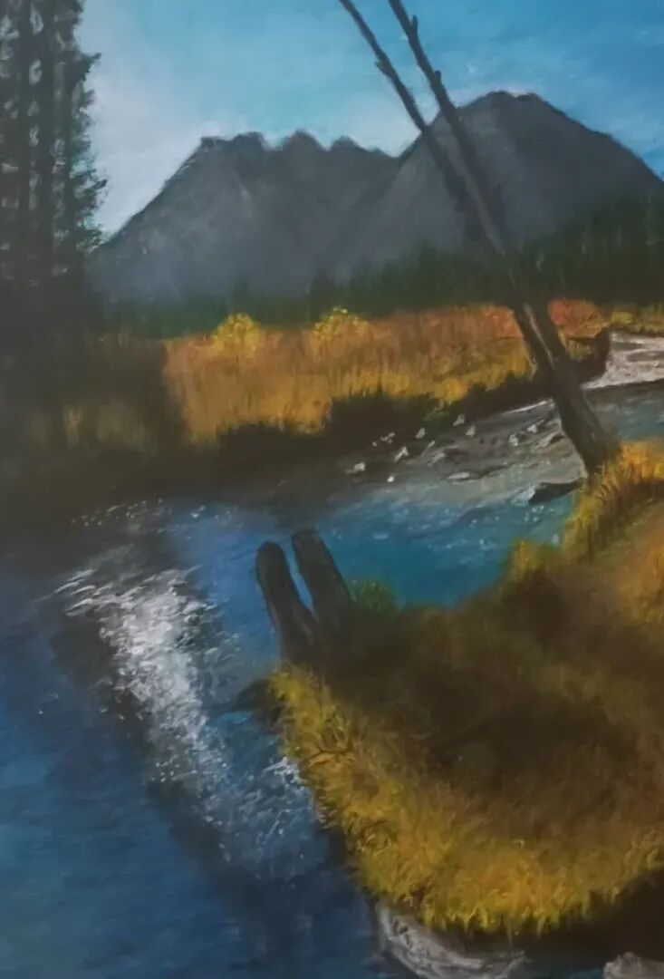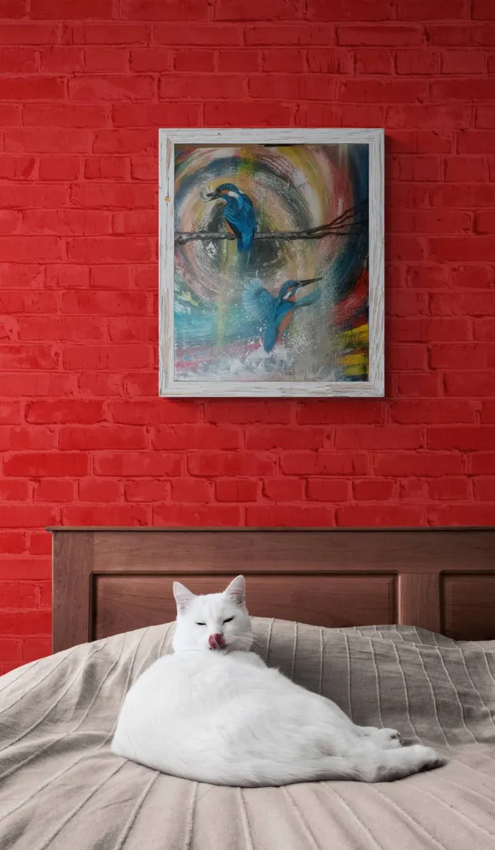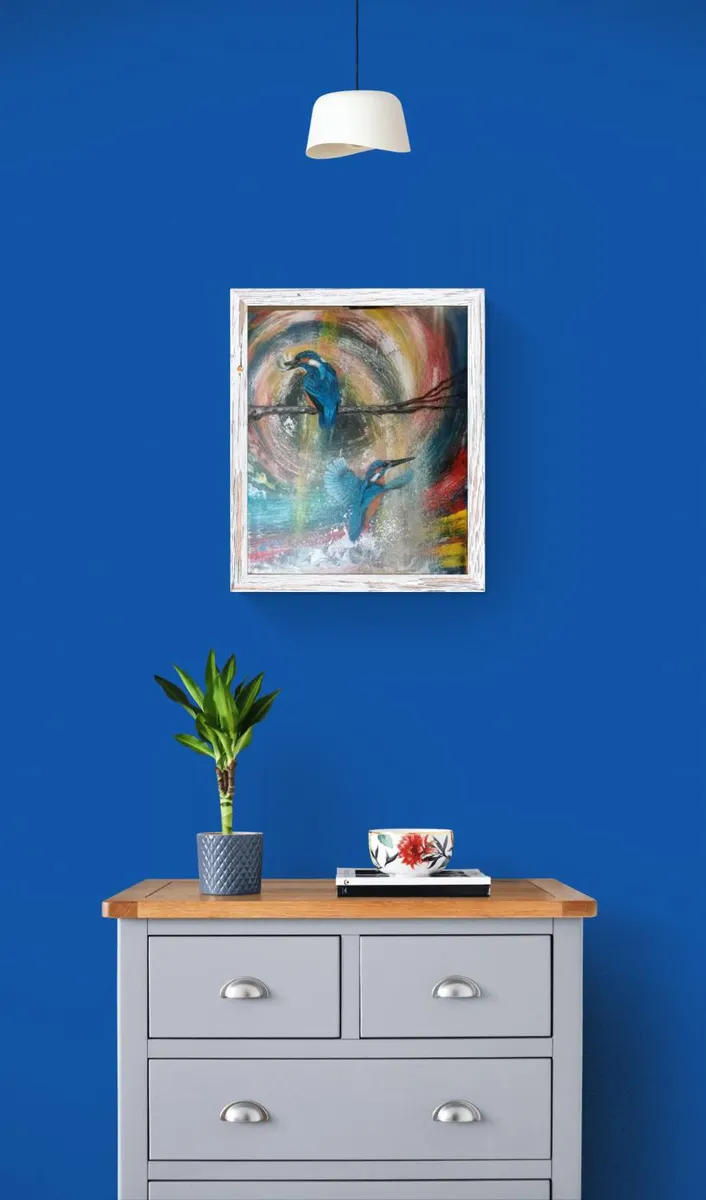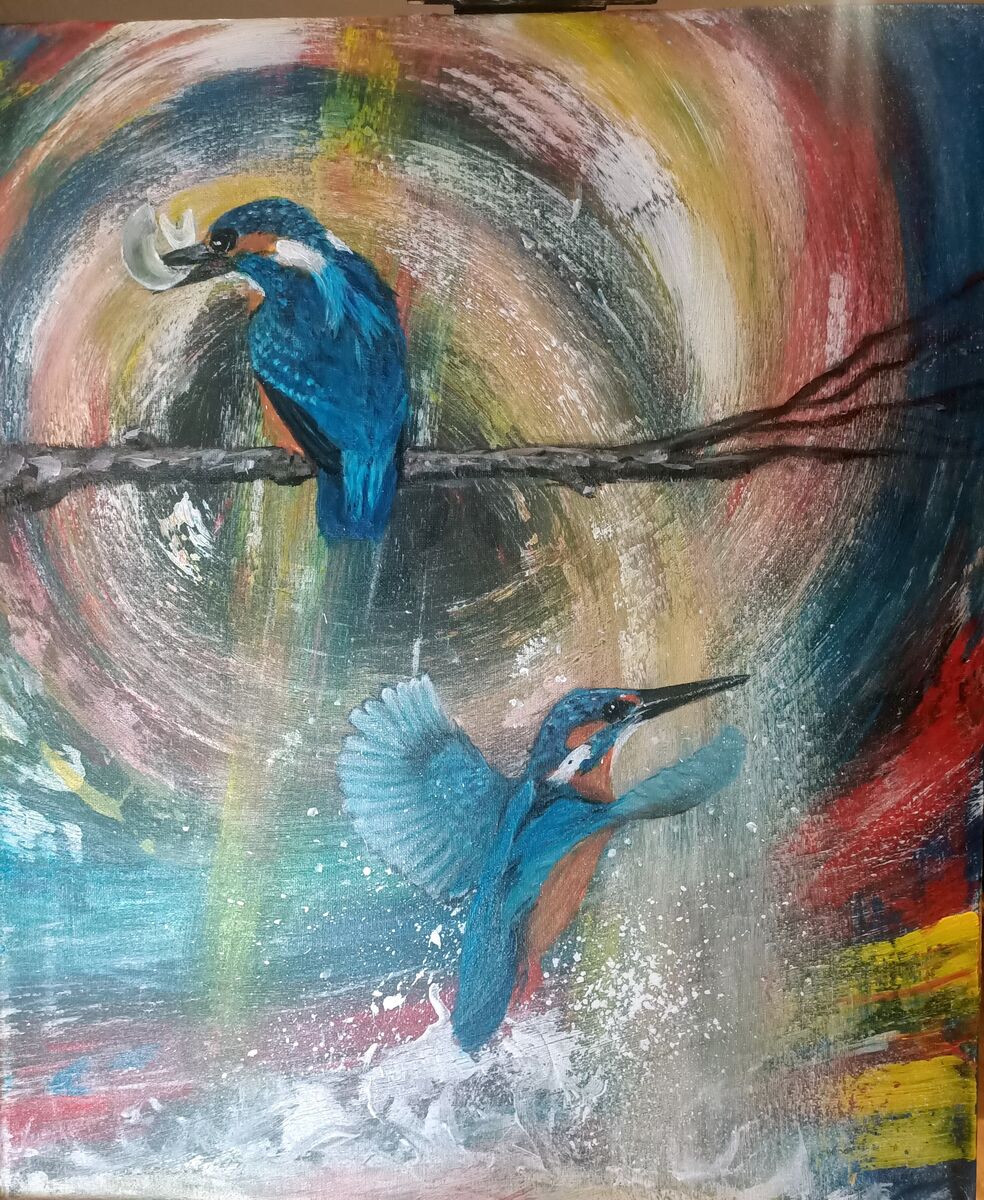 Kingfisher Freedom is an abstract realism piece that shows freedom and movement in colour and composition and brings a vibrant feel in an abstract and natural way combined to create a feeling of freedom