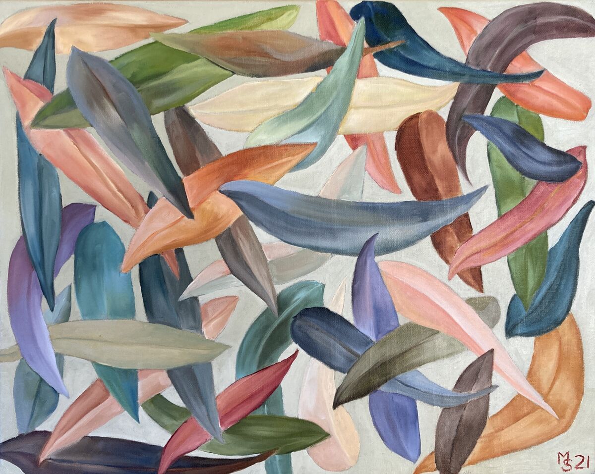 I paint a lot of leaves but this time I wanted to play with colour and abstract the leaves to make the painting more decorative. I had fun painting this one.